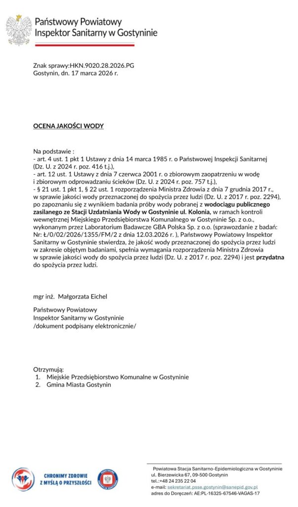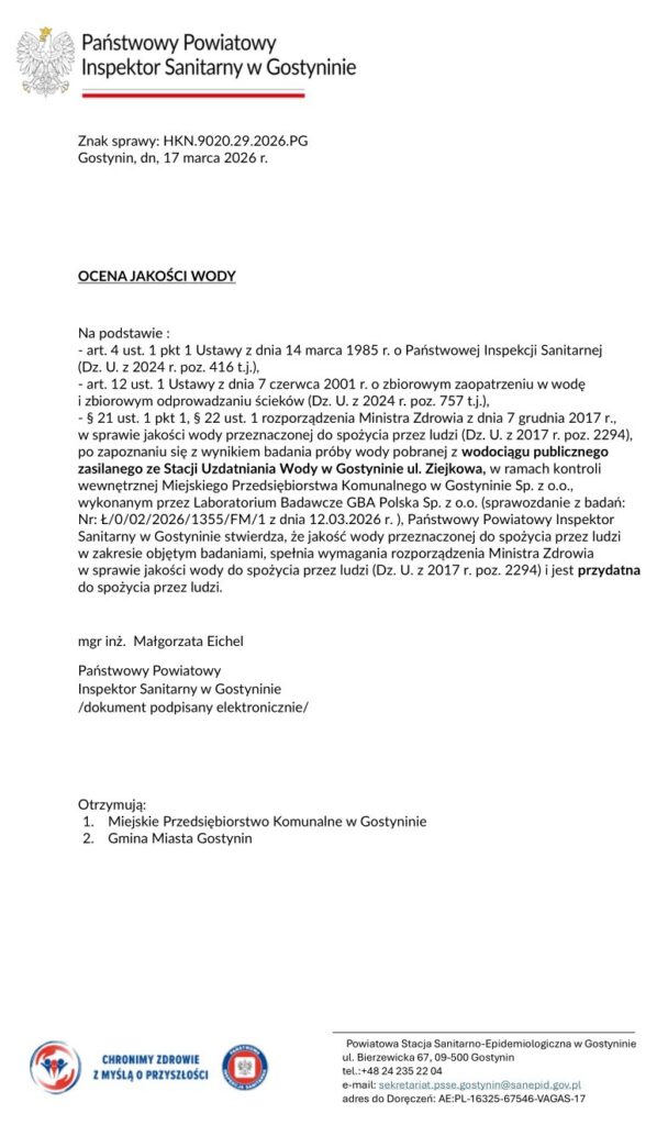 | Twardość | Wodociąg Gostynin |